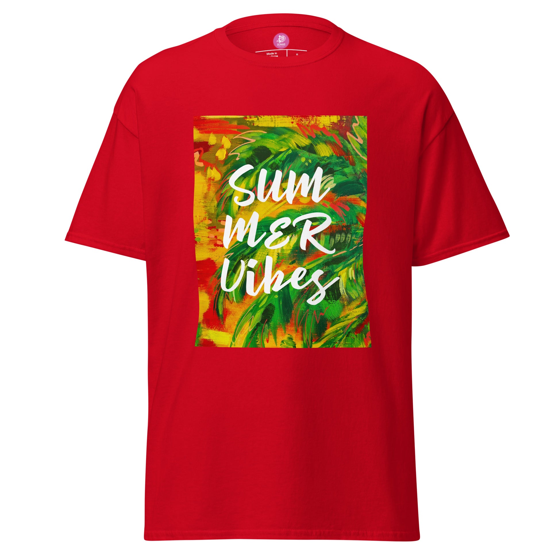 Bring the sunshine with you wherever you go in this bold Summer Vibes unisex t-shirt. Featuring a vibrant, tropical-inspired design with expressive brushstrokes and leafy details, it's perfect for beach days, music festivals, or simply spreading good energy. Made from soft, breathable cotton and available in multiple colors, this tee offers comfort, style, and a pop of personality all summer long.